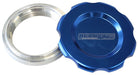 Low Profile Billet Aluminium Filler Cap & Bung 2" Female weld-on bung, includes Buna N & EPR O-rings. Blue Cap