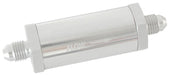Long Inline Fuel & Oil Filter -4AN Silver Finish. Includes 30 Micron Element, 3" Long, 1" O.D
