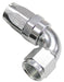 150 Series Taper One-Piece Full Flow Swivel 90° Hose End -8AN Silver Finish. Suit 100 & 450 Series Hose