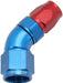550 Series Cutter Style One Piece Swivel 45° Stepped Hose End -8AN to -6 Hose Blue/Red Finish. Suits 100 & 450 Series Hose