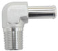 Male NPT to 90 Deg AN Hose Barb 3/8" NPT to -8 100/450 series Hose, Silver Finish